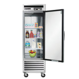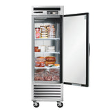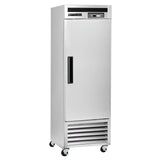 MCF-23FDHCThe Maxx Cold Single Door Reach-In Bottom Mount Freezer is engineered for demanding commercial kitchens, offering a blend of performance, durability, and easy maintenance. Its stainless steel exterior and interior provide superior resistance to wear, while the 23 cu. ft. capacity ensures ample frozen storage for ingredients and prepared foods. The field-reversible, self-closing door with a recessed, easy-grip handle enhances accessibility and saves valuable aisle space for maximum layout flexibility. The digital temperature control and LED exterior display allow for precise temperature monitoring, and the open-door alert system protects your inventory by signaling if the door is left open for five minutes. Three fully adjustable, heavy-duty wire shelves maximize storage options and accommodate a wide variety of products, including full-size sheet pans. The freezer's efficient bottom-mounted compressor system, polyurethane foam insulation, and Energy Star certification contribute to reliable performance and cost-saving energy efficiency. Integrated features such as interior LED lighting, automatic defrost, and a lock for security make daily operation seamless for staff. Swivel casters allow for easy movement and cleaning access, while the condensate evaporator eliminates the need for a drain line. Built to exceed rigorous foodservice standards, this freezer is an ideal solution for restaurants, cafeterias, catering services, and institutional kitchens that require dependable frozen storage, streamlined operation, and lasting value. This freezer is covered by the Maxx Cold Three-Year Warranty on Parts and Labor and a Five-Year Warranty on the Compressor, offering peace of mind and investment protection for your commercial operation.