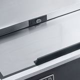 MXCR65BHCThe Maxx Cold X-Series Horizontal Bottle Cooler is ideal for keeping bottled or canned beverages cold and accessible. This commercial bottle cooler has a storage capacity of 17 cubic feet, making it perfect for chilling and storing bottled beverages such as ice cold beer, soda, water and more. The spacious stainless steel interior houses an LED light to illuminate the contents. Two sliding top lids allow for easy access to the stored drinks. The built-in bottle opener and bottle cap catcher make this unit efficient and functional for high-volume operations. The durable and sleek black steel exterior complements bars and other entertainment applications, while the rear shelf with marine edge provides additional prep counter space. The cooling system provides consistent temperature control, and the unit has urethane foam insulated walls and doors. This horizontal beer cooler has four rollers for mobility and two adjustable internal dividers to organize your bottled drinks. For efficient, organized and visually appealing storage for bottled beverages, the Maxx Cold X-Series Horizontal Bottle Cooler is an excellent addition to your bar. Covered by the Maxx Cold One-Year Parts & Labor + Five-Year Compressor (Part Only) Warranty. *Item not approved for sale in California