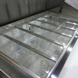 - Equipped with full set of clip-on divider bars and (27) 4" deep plastic pans