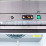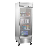 MXSR-23GDHCThe Maxx Cold Select Series Bottom Mount Single Glass Door Reach-In Refrigerator is the perfect choice for your cold food storage needs in commercial kitchens. This durable reach-in refrigerator is constructed from stainless steel and has one heavy-duty self-closing glass door with a curved handle. Optimal temperature control is provided by extra thick environmentally safe, CFC-free polyurethane foam insulation. Interior lighting is controlled by a manual on-off switch and lets you easily see what’s inside. This refrigerator has door locks and password-protected solid-state digital temperature controls to keep your contents secure. A programmable automatic defrost system prevents the evaporator from icing and keeps the unit at peak operating condition. Keep your food organized with 23 cubic feet of storage space plus three heavy-duty corrosion-resistant poly-coated shelves. Four swivel casters ensure easy maneuvering and mobility, while the bottom mount utility compartment delivers easy service access. The stainless steel refrigerator has a large, easy-to-read digital display that shows the internal temperature, which is maintained at 33°F to 41°F (1°C to 5°C). You won’t have to worry about losing food because the open door alert beeps when the door has been left open or ajar. Choose the Maxx Cold Select Series Bottom Mount Single Glass Door Reach-In Refrigerator for your foodservice needs. Covered by the Maxx Cold One-Year Parts & Labor + Five-Year Compressor (Part Only) Warranty.