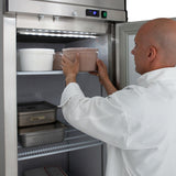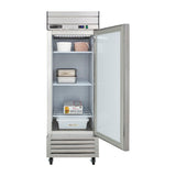 MVF-23FDHCIdeal for use in restaurants, cafes, bakeries, catering businesses and more, the Maxx Cold V-Series 1 Door Reach-In Freezer is a smart investment. Offering ample storage space for frozen foods, ingredients and more, this commercial reach-in freezer measures 27"W and has a storage capacity of 19 cubic feet. Built to withstand the demands of a commercial kitchen environment, it is constructed of a durable, easy-to-clean stainless steel exterior and painted aluminum interior. This reach-in freezer has one self-closing, locking solid door with an easy-to-grip recessed handle, and the unit's open door alert beeps when the door has been open for three minutes. Three adjustable heavy-duty wire shelves let you organize and store frozen food and beverage items efficiently. The unit has an easily accessible bottom mount for cleaning and is equipped with 4-inch swivel casters for easy mobility in your commercial kitchen. The digital control system lets you easily adjust the temperature with the range of -10°F to 10°F (-23°C to -12°C), and the LED temperature display is easy to read. This single-door reach-in freezer features automatic interior lighting, an automatic defrost system and urethane foam insulated walls and doors. The unit is equipped with an integrated condensate evaporator; therefore, no drain line connection is needed. Investing in the Maxx Cold V-Series 1 Door Reach-In Freezer is a practical and essential decision for businesses in the foodservice industry. Covered by the Maxx Cold Six-Month Parts and Labor Limited Warranty.