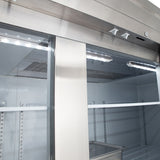 Ideal for use in restaurants, cafes, bakeries, catering businesses and more, the Maxx Cold V-Series 3 Door Reach-In Freezer is a smart investment. Offering ample storage space for frozen foods, ingredients and more, this commercial reach-in freezer measures 81"W and has a storage capacity of 65 cubic feet. Built to withstand the demands of a commercial kitchen environment, it is constructed of a durable, easy-to-clean stainless steel exterior and painted aluminum interior. This reach-in freezer has three self-closing, locking solid doors with easy-to-grip recessed handles, and the unit's open door alert beeps when the door has been open for three minutes. Nine adjustable heavy-duty wire shelves let you organize and store frozen food and beverage items efficiently. The unit has an easily accessible bottom mount for cleaning and is equipped with 4-inch swivel casters for easy mobility in your commercial kitchen. The digital control system lets you easily adjust the temperature with the range of -10°F to 10°F (-23°C to -12°C), and the LED temperature display is easy to read. This single-door reach-in freezer features automatic interior lighting, an automatic defrost system and urethane foam insulated walls and doors. The unit is equipped with an integrated condensate evaporator; therefore, no drain line connection is needed. Investing in the Maxx Cold V-Series 3 Door Reach-In Freezer is a practical and essential decision for businesses in the foodservice industry. Covered by the Maxx Cold Six-Month Parts and Labor Limited Warranty.