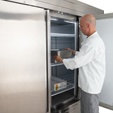 • Reach-in freezer with three self-closing, locking doors with easy-to-grip recessed handles