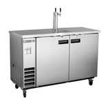 MXBD60-1SHCThe Maxx Cold X-Series Single Tower, 2 Tap Beer Dispenser is engineered for durable usage, efficient performance and easy cleaning. It accommodates 2 barrels/kegs, providing up to 14.2 cubic feet (402 L) of storage capacity. The single-tower beer dispenser is ideal for pubs, bars, breweries, catering services, banquet halls or special events and parties requiring a draft brew. The exterior and top of the kegerator are constructed of stainless steel, while the interior of the cabinet is crafted in sanitary white powder-coated steel paired with a stainless steel floorplate. This unit is fully insulated with 2-inch (50 mm) CFC-free polyurethane on the walls and doors. The standard 3-inch (77 mm) polished stainless-steel draft tower dispenser, which is mounted to the top center counter, is cooled by continuous cold air circulation to maintain tap temperature that reduces foam when dispensing and can easily fill pint beer glasses, frosted beer mugs and pitchers. The self-contained forced-air refrigeration system cools the base cabinet and tower to optimize temperature throughout your commercial operations. The solid-state digital control system is designed with LED temperature display. This beer tower dispenser is engineered to facilitate maintenance and maneuvering by the operator, with an easy-to-clean slide-out condensing unit, recessed drawer handles (with locks) and four swivel casters (two with brakes). The dispenser is equipped with an integrated condensate evaporator, meaning no drain line connection is needed. Operation requires CO2 tank and regulator (not included). Quickly and efficiently serve draft beer to your guests with the Maxx Cold X-Series Single Tower Two Tap Beer Dispenser. Covered by the Maxx Cold One-Year Parts & Labor + Five-Year Compressor (Part Only) Warranty.