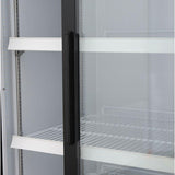 MXM2-48RSHCMaxx Cold two section glass merchandiser refrigerator with self-closing sliding doors is ideal for displaying a wide variety of beverages, storing take-out food as well as increasing impulse sales. The double door merchandiser utilizes environmentally friendly R290 refrigerant and designed with energy efficient components. The bright white LED interior lighting illuminates the cabinet interior and the double pane glass doors prevent fog and reduce condensation always providing end users and operators quick access and visibility. The double doors conveniently slide open for quick access then automatically close, and seal shut with the robust magnetic door gaskets. The powerful compressor, thick and efficient foamed-in-place insulation, and precise digital temperature controller keep all your beverages such as soda, beer, energy drinks, milk and juice at the exact temperature. Additional features include heavy duty coated shelves with stainless steel shelf clips, standard door locks, and adjustable feet. Merchandisers are constructed of high quality commercial components and materials that meet strict UL and NSF commercial standards. Glass door merchandisers can be installed at any restaurant, take-out establishment, convenience store, hotel, concession stand, deli, café, grocery or retail store and can even be installed in your home kitchen, game room and garage.