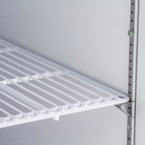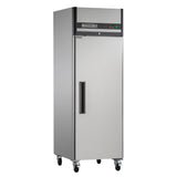 MXCR-23FDHCMaxx Cold 26.8 inch wide single door, top mount reach-in refrigerator is designed to assist you in meeting all food service industry requirements while making its content easy to access. The cabinet is equipped with 3 heavy-duty fully adjustable and easy to clean PE coated wire shelves which can hold full size sheet pans and provides up to 23 cubic ft. (651 L) of storage capacity, while it’s slender and solid build makes it a great choice for smaller or limited spaces. In addition, the single door commercial refrigerator model is engineered with an open-door alert that beeps if the refrigerator is left open for three minutes and the single door model is field reversible. This environment friendly reach-in commercial grade refrigerator is constructed of durable stainless steel (exterior) and sanitary white painted aluminum (interior). The unit is mounted on 4” diameter swivel caster wheels for mobility. Standard features on this premium indoor refrigerator include integrated energy saving interior LED lighting, automatic defrost function, lock and key set for security and digital temperature control which maintains optimum temperature. Digital temperature display can be viewed from outside the cabinet, which is engineered with an integrated condensate evaporator; meaning no drain line connection is needed. The environment friendly urethane foam insulation on this one-door commercial refrigerator provides outstanding thermal regulation and is energy efficient. *Item not approved for sale in California