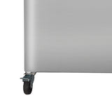 MCRT-72FDHCThe Maxx Cold Triple Door Reach-In Top Mount Refrigerator is designed to assist you in meeting all foodservice industry requirements while making its content easy to access. The cabinet is equipped with nine heavy-duty fully adjustable and easy-to-clean PE-coated wire shelves which can hold full-size sheet pans. The unit provides up to 72 cubic feet of storage capacity, while its slender and solid build makes it a great choice for limited or compact spaces. This commercial refrigerator is engineered with an open-door alert that beeps if the refrigerator is left open for five minutes. This reach-in commercial refrigerator is constructed of a durable stainless steel exterior and interior, and is mounted on 4-inch diameter swivel caster wheels that can easily be maneuvered. Standard features on this premium indoor refrigerator include integrated energy-saving interior LED lighting, automatic defrost function, lock and key set for security and digital temperature control which maintains optimum temperature. Digital temperature display can be viewed from outside the cabinet, which is engineered with an integrated condensate evaporator; meaning no drain line connection is needed. The environmentally friendly polyurethane foam insulation on this three-door commercial refrigerator provides outstanding thermal regulation and is very energy efficient. Covered by the Maxx Cold One-Year Parts & Labor + Five-Year Compressor (Part Only) Warranty.