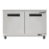 MXCR60UHCDesigned to provide maximum storage, significant energy savings and cold, accurate temperatures, the Maxx Cold X-Series Double Door Undercounter Refrigerator is ideal for food storage needs in commercial settings. This two-door undercounter refrigerator provides easy accessibility, optimum capacity and flexibility for quick and efficient food preparation. Made of a durable, easy-to-clean stainless steel exterior and painted aluminum interior, this compact refrigerator features 15.5 cubic feet of storage space and two doors with easy-to-grip recessed door handles. Each section includes an adjustable heavy-duty wire shelf to organize your food, beverages and ingredients. The unit is equipped with four, 3-inch swivel casters for easy maneuverability in tight spaces. This compact refrigerator is engineered with a digital temperature display, which can be viewed from outside the cabinet. This unit is equipped with an integrated condensate evaporator, meaning no drain line connection is needed. This two-door undercounter refrigerator is engineered with urethane insulation, which provides outstanding thermal regulation for energy efficiency. Ideal for a variety of settings, including cafes, snack bars, concession stands and more, the Maxx Cold X-Series Double Door Undercounter Refrigerator is a wise choice for your food storage needs. Covered by the Maxx Cold One-Year Parts & Labor + Five-Year Compressor (Part Only) Warranty.
