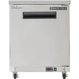 MXCR27UHCDesigned to provide maximum storage, significant energy savings and cold, accurate temperatures, the Maxx Cold Single Door Undercounter Refrigerator is ideal for food storage needs in commercial settings. This single-door undercounter refrigerator provides easy accessibility, optimum capacity and flexibility for quick and efficient food preparation. Made of a durable, easy-to-clean stainless steel exterior and painted aluminum interior, this compact refrigerator features 6.5 cubic feet of storage space and one door with an easy-to-grip recessed door handle. It includes an adjustable heavy-duty wire shelf to organize your food, beverages and ingredients. The unit is equipped with four, 3-inch swivel casters for easy maneuverability in tight spaces. This compact refrigerator is engineered with a digital temperature display, which can be viewed from outside the cabinet. This unit is equipped with an integrated condensate evaporator, meaning no drain line connection is needed. This one-door undercounter refrigerator is engineered with urethane insulation, which provides outstanding thermal regulation for energy efficiency. Ideal for a variety of settings, including cafes, snack bars, concession stands and more, the Maxx Cold Single Door Undercounter Refrigerator is a wise choice for your food storage needs.