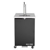 The Maxx Cold X-Series Single Tower, 1 Tap Beer Dispenser is engineered for durable usage, efficient performance and easy cleaning. It accommodates 1 barrel/keg, providing up to 7.2 cubic feet (204 L) of storage capacity. The single-tower beer dispenser is ideal for pubs, bars, breweries, catering services, banquet halls or special events and parties requiring a draft brew. The exterior of the kegerator is constructed of black powder-coated steel with a stainless steel top, while the interior of the cabinet is crafted in sanitary white powder-coated steel paired with a stainless steel floorplate. This unit is fully insulated with 2-inch (50 mm) CFC-free polyurethane on the walls and door. The standard 3-inch (77 mm) polished stainless-steel draft tower dispenser, which is mounted to the top center counter, is cooled by continuous cold air circulation to maintain tap temperature that reduces foam when dispensing and can easily fill pint beer glasses, frosted beer mugs and pitchers. The self-contained forced-air refrigeration system cools the base cabinet and tower to optimize temperature throughout your commercial operations. The solid-state digital control system is designed with LED temperature display. This beer tower dispenser is engineered to facilitate maintenance and maneuvering by the operator, with an easy-to-clean slide-out condensing unit, recessed drawer handles (with locks) and four swivel casters (two with brakes). The dispenser is equipped with an integrated condensate evaporator, meaning no drain line connection is needed. Operation requires CO2 tank and regulator (not included). Quickly and efficiently serve draft beer to your guests with the Maxx Cold X-Series Single Tower One Tap Beer Dispenser. Covered by the Maxx Cold One-Year Parts & Labor + Five-Year Compressor (Part Only) Warranty.